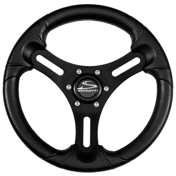 Item # PU063104 – 13″ Torcello Lite, black polyurethane, aluminum spoke (satin silver or black), black plastic cap (scallop cap optional), 3/4″ tapered hub.